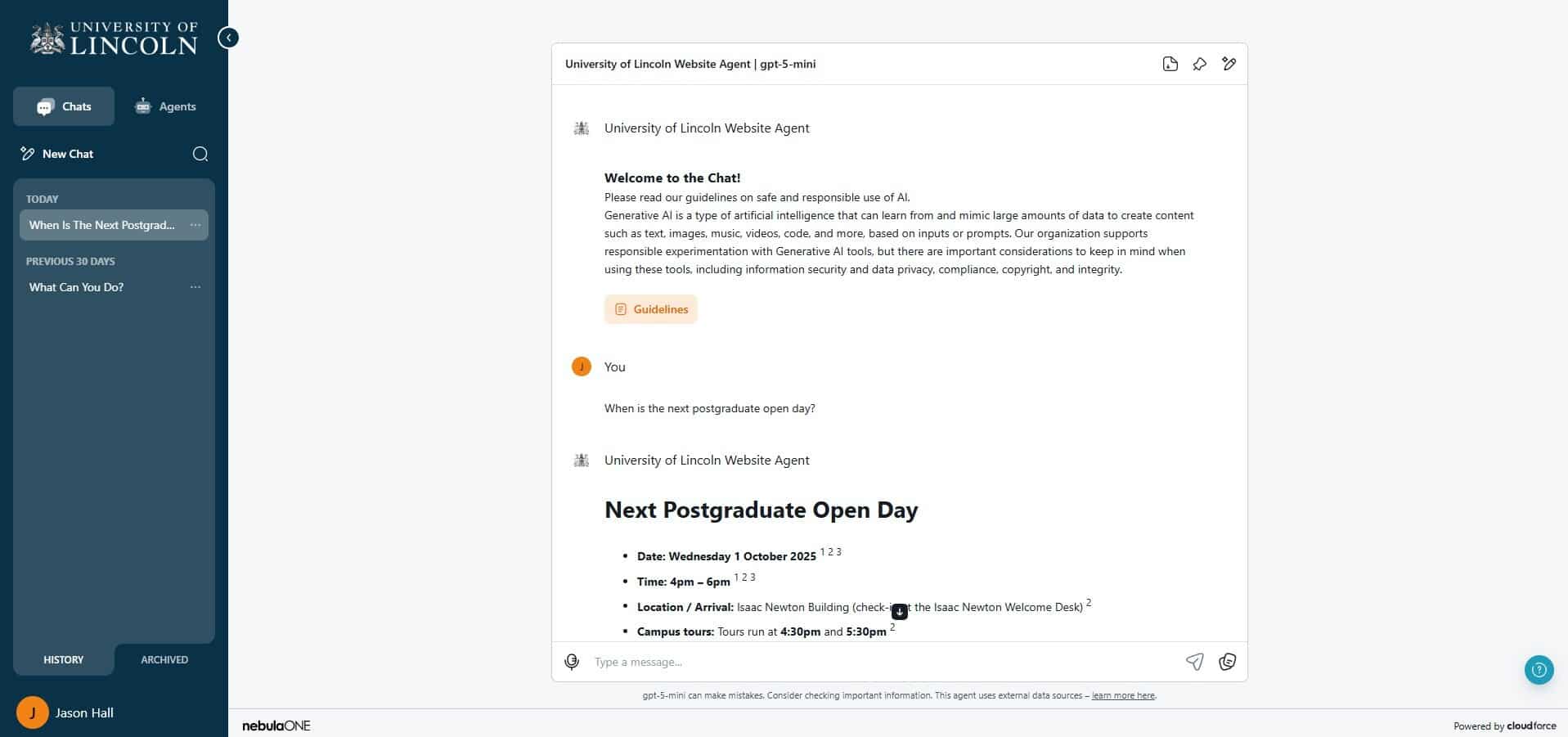 By embedding nebulaONE across the University, Lincoln is ensuring that its students learn how to use AI responsibly: citing it correctly, understanding its limitations, and recognising the value of their own judgment. This prepares graduates to enter the workplace not only able to use AI effectively, but also to use it ethically, a skill that employers are increasingly demanding.